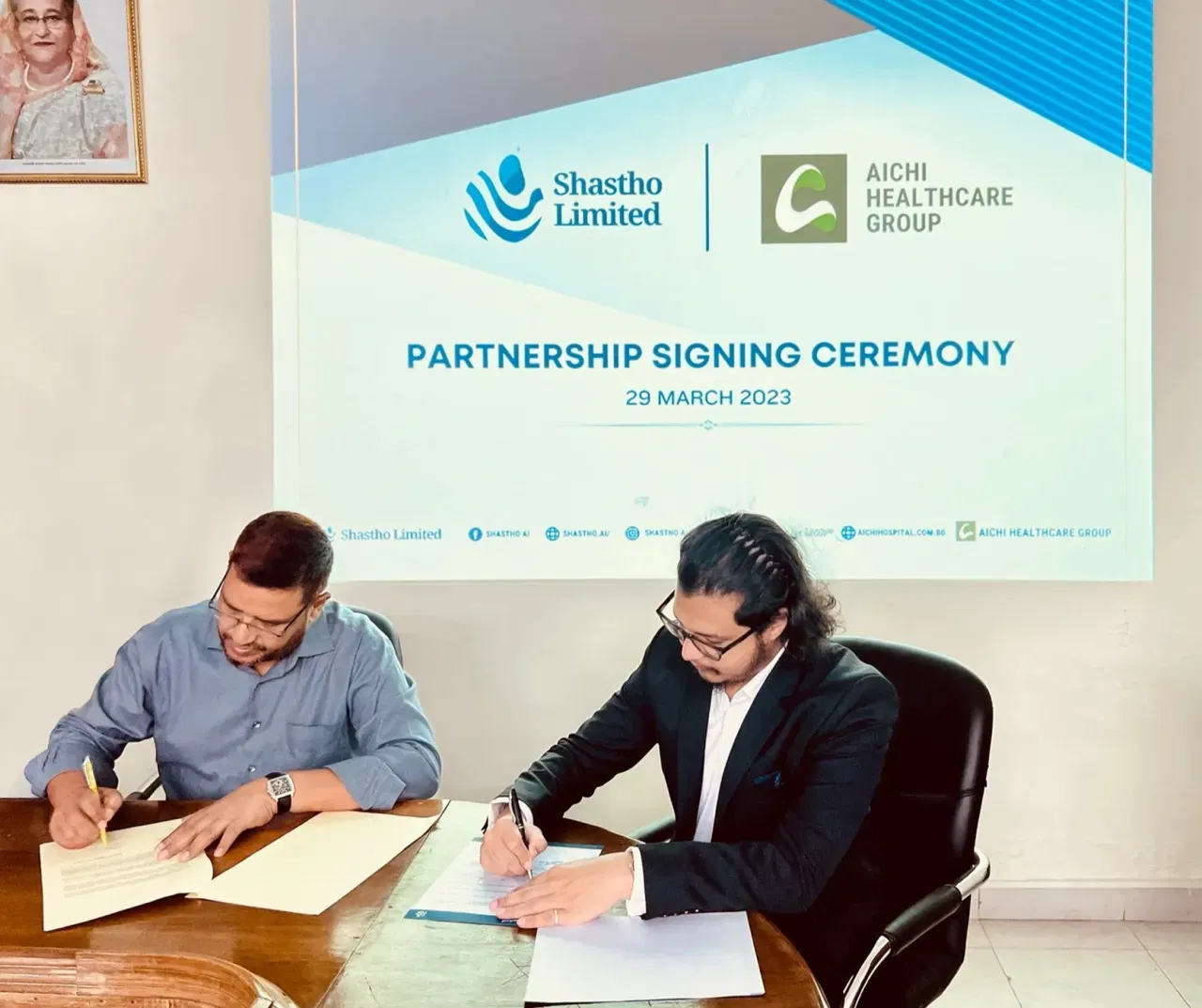 We are overjoyed to announce that Shastho Limited has embarked on a new partnership with the Aichi Healthcare Group, marking a significant milestone in our journey to enhance healthcare services. The partnership has been formalized with East West Medical College Hospital, a prestigious member of the Aichi Healthcare Group. This agreement was signed by Brig Gen (Retd) Dr. Md. Abdullah Al Jobair, Director of East West Medical College Hospital, and Mir Ayman Ali, CEO of Shastho Limited.